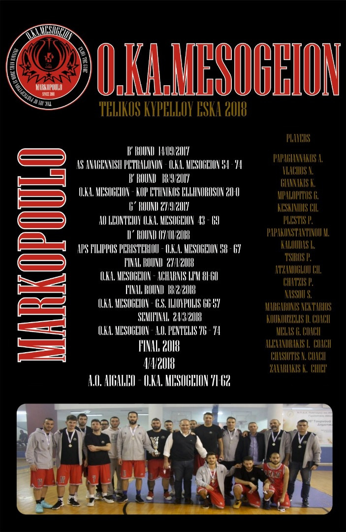 ΟΚΑ ΜΕΣΟΓΕΙΩΝ (Χασιώτης, Μελάς): Γιαννάκης 5, Τσίρος, Ατζαμόγλου 16 (2), Κεσκινίδης 10 (1), Παπαγιαννάκος 5, Παπακωνσταντίνου 10 (2), Βλάχος 5, Χατζής 4, Μπαλόπητος 5 (1), Νάσσου 8 (2), Καλούδας 10 (2).