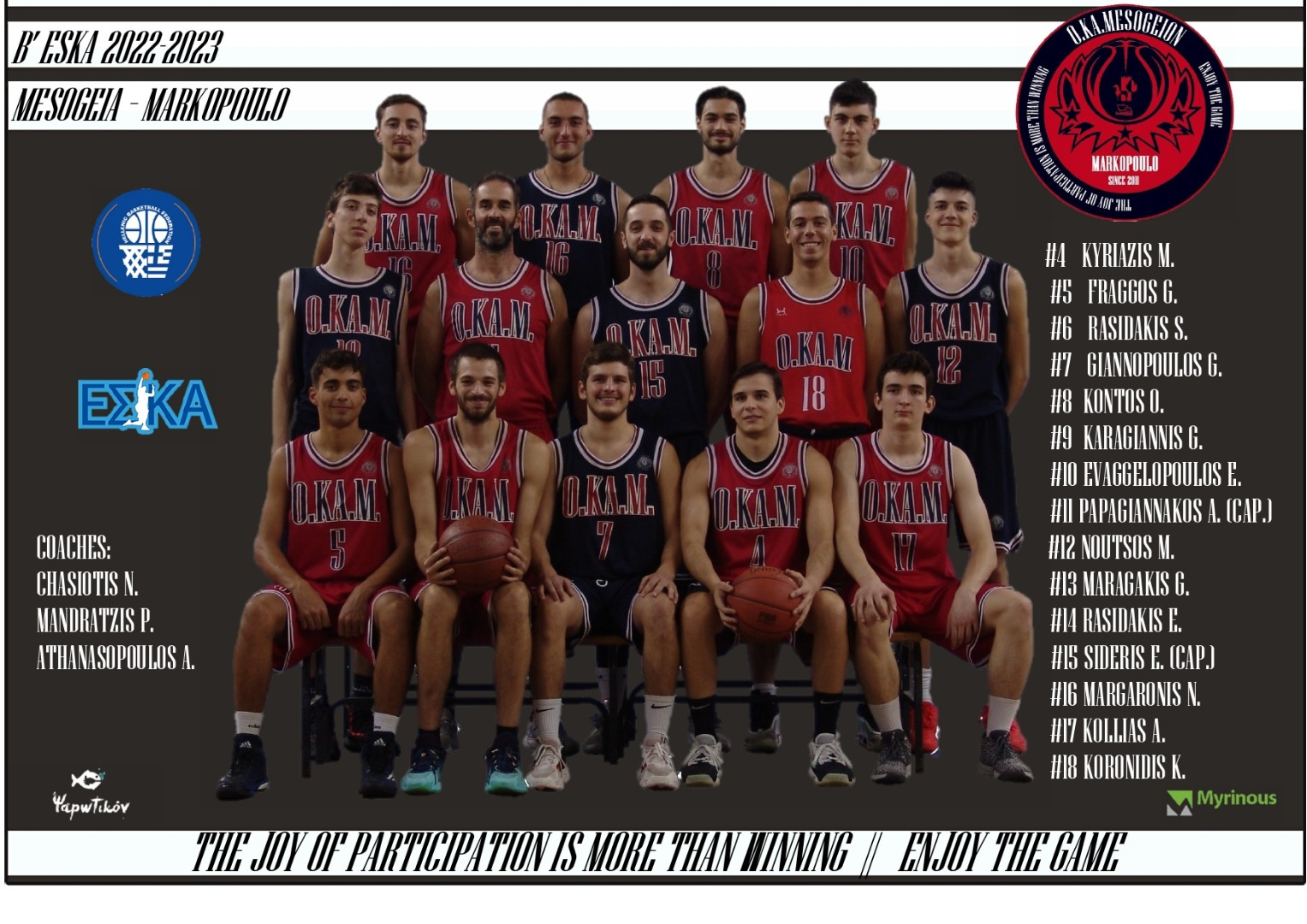 Ο.ΚΑ.Μεσογείων: Κυριαζής 18(1), Φράγκος, Γιαννόπουλος 19(4), Κοντός 12(1), Καραγιάννης 5, Ευαγγελόπουλος 3(1), Σιδέρης 11(1) Κόλλιας, Μαραγκάκης